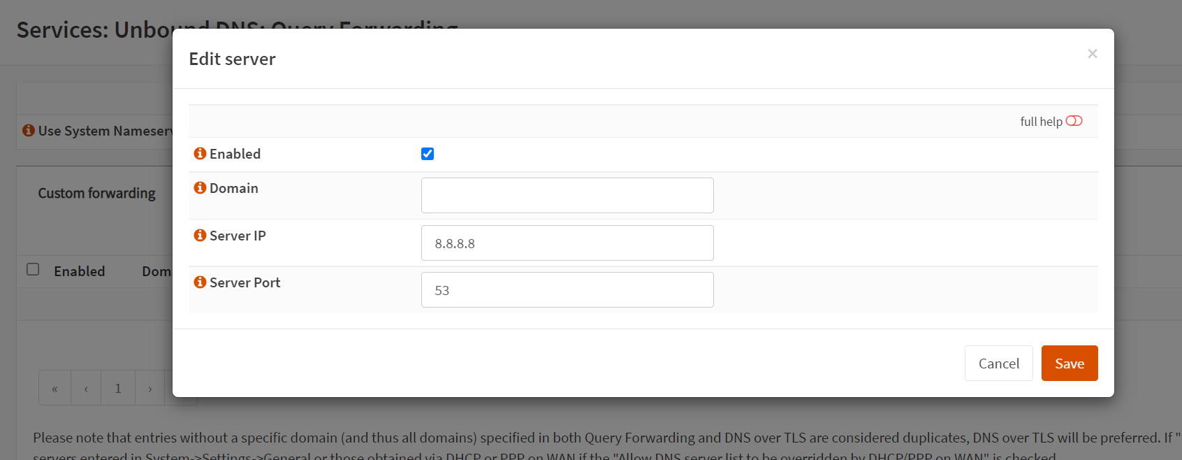 그 뒤 Query Forwarding을 클릭하여 구글 DNS 서버를 등록해 봅니다.