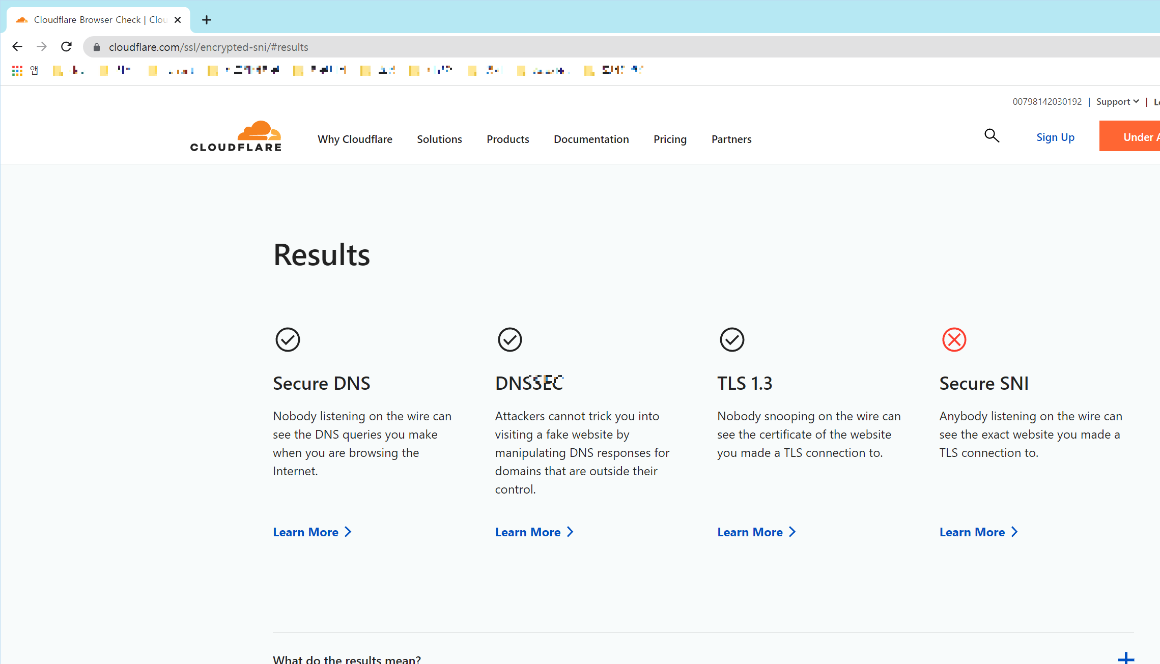 잘 설정이 되었습니다. 다음 사이트를 통해 DNSSEC 외에 Secure DNS, TLS1.3 적용 여부, Secure SNI 적용 여부 네 가지 항목을 체크할 수 있습니다.