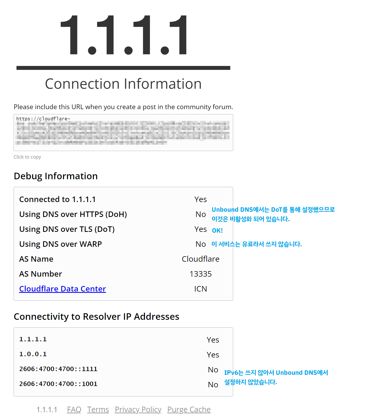 - 기본 : 1.1.1.1, CN=cloudflare-dns.com